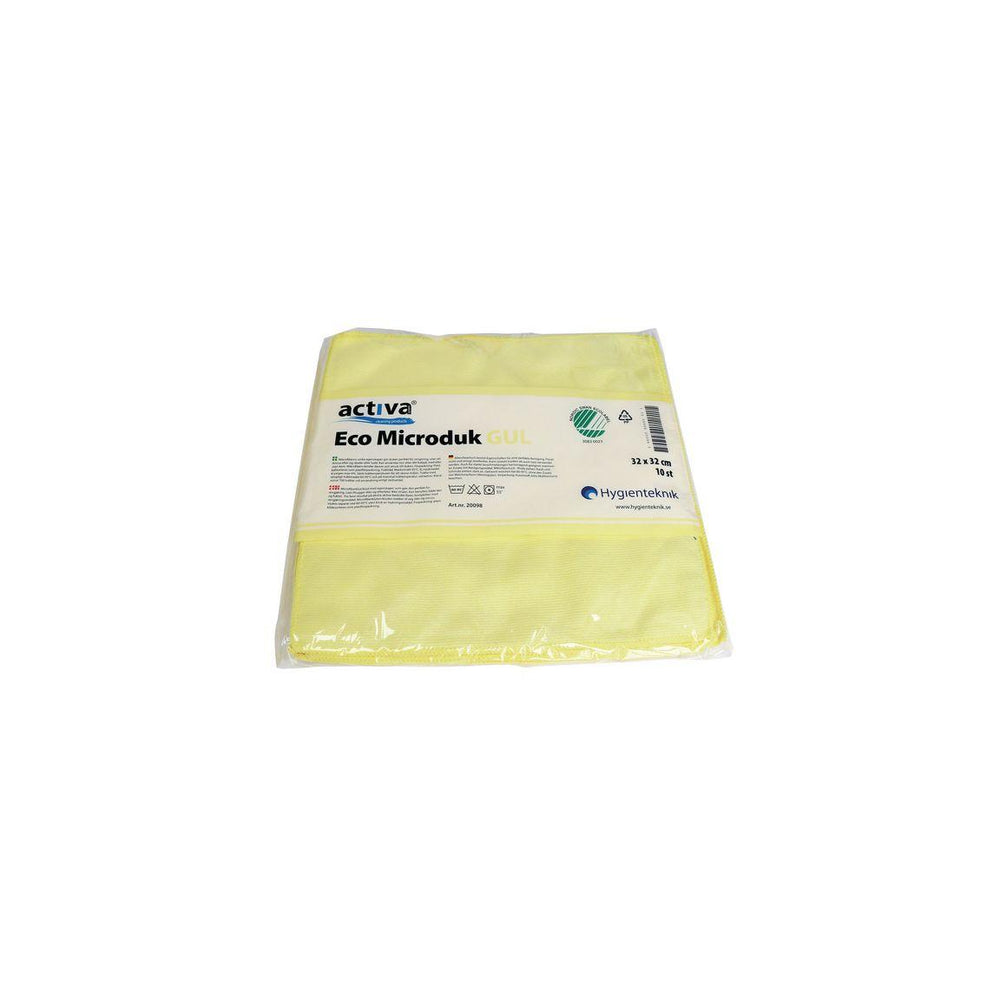 En svanenmärkt mikrofiberduk med hög kvalitet och funktion. Kan användas torr eller fuktig, med eller utan kem. Duken är tillverkad i ett material som gör effektivt rent utan att kännas stickig mot huden. Kan användas på alla hårda ytor och ger ett repfritt resultat. Vi avråder från användning på känsliga ytor som dataskärmar, läsplattor och smartphones. Rätt använd har varje duk åtta rena städytor. Rengör effektivt med enbart vatten. Klarar minst 700 tvättar i temperaturerna 60-95 grader (Activa Ready-garanti). Krymper max 6%. - Storlek 32x32 cm - Material: 80% polyester, 20% polyamid - Svanen: Licensnummer 30830023
