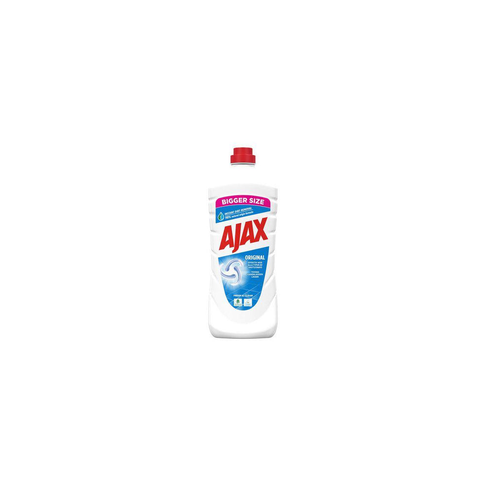 Effektiv rengöring för hemmets alla ytor som efterlämnar en mild och fräsch doft. Rengör på djupet och gör ytorna skinande rena, för daglig rengöring på alla vattentåliga ytor. Ajax Original är effektivt på alla ytor, inklusive kök, badrum, golv och mycket mer Dosering: Normalt smutsade golv: Häll 1 kapsyl i en hink med 8L vatten. Hårt smutsade golv: Häll 4 kapsyler i en hink med 8L vatten. Ingen eftersköljning behövs. Svåra fläckar: Häll några få droppar på en svamp och skrubba försiktigt. Eftertorka med en fuktig trasa. Blanda ut produkten med vatten innan den används på ytor av marmor, aluminium, kalksten, porslin och lackat trä. - pH-värde: 10,6-11,4 - Lukt: parfymerad - Utseende: vit vätska - EU Ecolabel: licensnummer DK/020/013