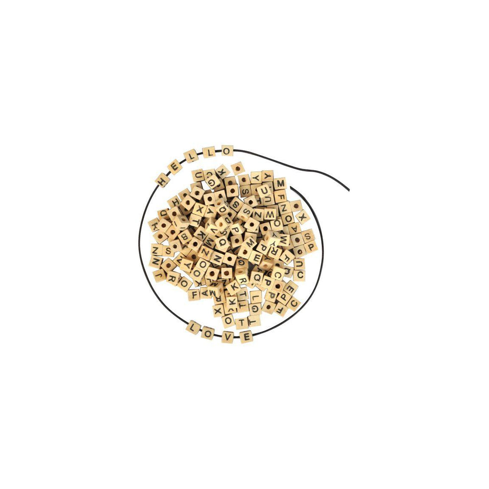 Fyrkantiga träpärlor med bokstäverna A–Ö. Att trä armband eller halsband till sig själv och andra är en rolig sysselsättning och dessutom perfekt för alla som vill öva på att läsa och skriva. - Antal: 300/FP - Mått: 7x7 mm, hål 3 mm - Material: Trä Varning. Lämpar sig inte för barn under 3 år