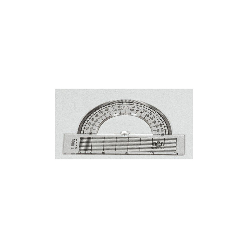 Av transparent styrenplast. Halvcirkelgradskiva 180 grader. Bas 9,5 cm.