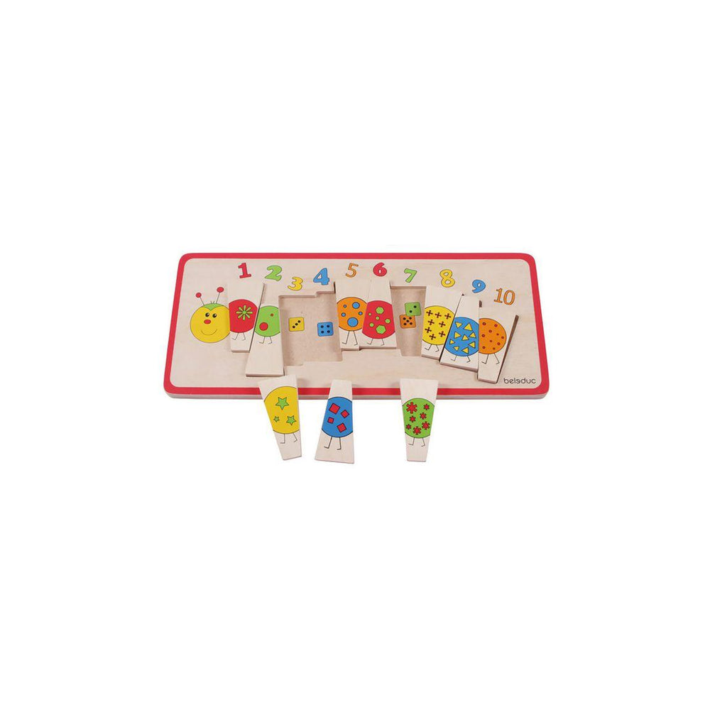 Ett pedagogiskt pussel där barnen kan bekanta sig med siffrorna 1-10. Pusslet är till stor hjälp i processen med att börja lära sig grundläggande aritmetik. Med det roliga och färgglada pusslet kan barnen börja ta det första stegen mot att lära sig räkna och känna igen siffror och vad de representerar. Pusslets bitar är lätta att använda. Rekommenderas från 3 år.