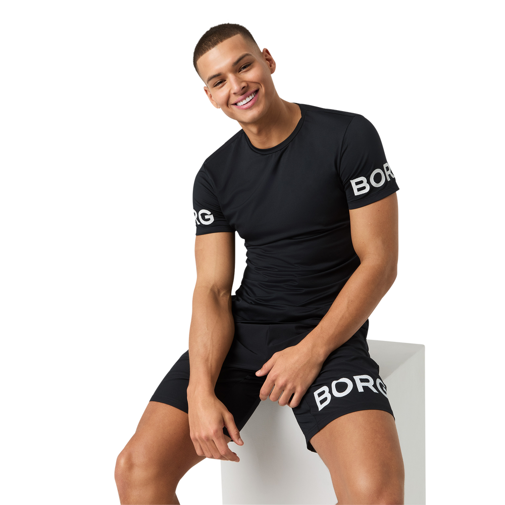 Björn Borg T-Shirt BB Logo är en funktionell t-shirt som gör träningen bekvämare. Materialet i åter vunnen polyester och elastan är tunt, mjukt och stretchigt. Gjord av Hydro Pro-material som tranpsor terar bort fukt. Normal passform med rum för rörelse. Borg-tryck på ärmarna är en fin detalj. T-Shirt BB Logo från Björn Borg är en funktionell t-shirt som gör träningen bekvämare. Materialet i återvunnen polyester och elastan är tunt, mjukt och stretchigt. Gjord av Hydro Pro-material som tra npsorterar bort fukt och håller dig torr och fräsch längre. För att ge dig större rörelsefrihet har ärmarna placerats lite högre och under ärmarna finns extra material. Normal passform men midjan är l ite längre bak för att ge bättre täckning även vid rörelser ovanför huvudet. Borg-tryck på ärmarna ä r en fin detalj.