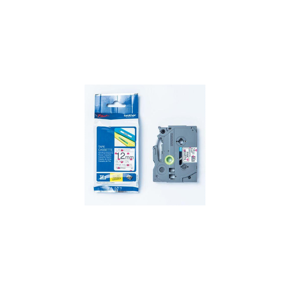 Visa dina etiketter lite kärlek med denna TZe-MPPH31 original laminerad tape. Dess rosa hjärtmönster passar perfekt till pyssel, kort och presenter. Eftersom tapen är laminerad kommer den att klara sig från att skadas. Kompatibel med P-touch märkmaskiner som har TZ- eller TZe-logotypen på kassettkåpan - Brother TZe-MPPH31 laminerad tape - Svart på rosa - 12 mm bred