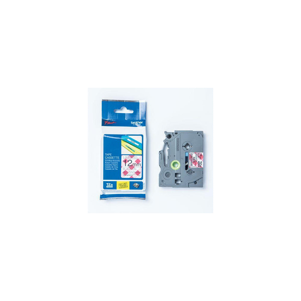 Kompatibel med P-touch märkmaskiner som har TZ eller TZe logotypen på kassettkåpan. Brother TZe-MPRG31 laminerad tape med svart text på rött rutmönster kan användas för att märka nästan vad som helst. Gör kreativa och roliga etiketter eller skapa ett personligt meddelande till brevpapper, kort, presenter och pyssel. - Brother laminerad tape - Svart text på rött rutmönster - 12 mm bred - Tapen är 8 m lång