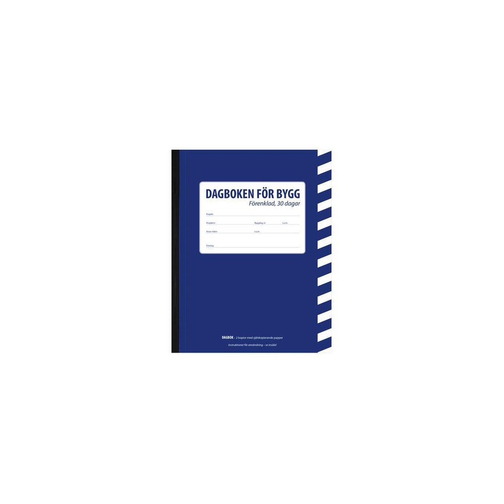 Förenklad dagbok förs om entreprenör och beställare överenskommit om detta, annars bör fullständig dagbok användas som finns både för 30 och 60 arbetsdagar. Den förenklade dagboken innehåller 2 kopior och är självkopierande. Dagboken ger korta förklaringar om hur hur noteringar ska föras. Påbörjade arbeten, pågående arbeten, färdiga arbeten, avvikelser störningar och ändringar m m. - Dagbok för bygg i block - Limmad kant - Förenklad - 30 dagar - Karbonpapper - Format: A5