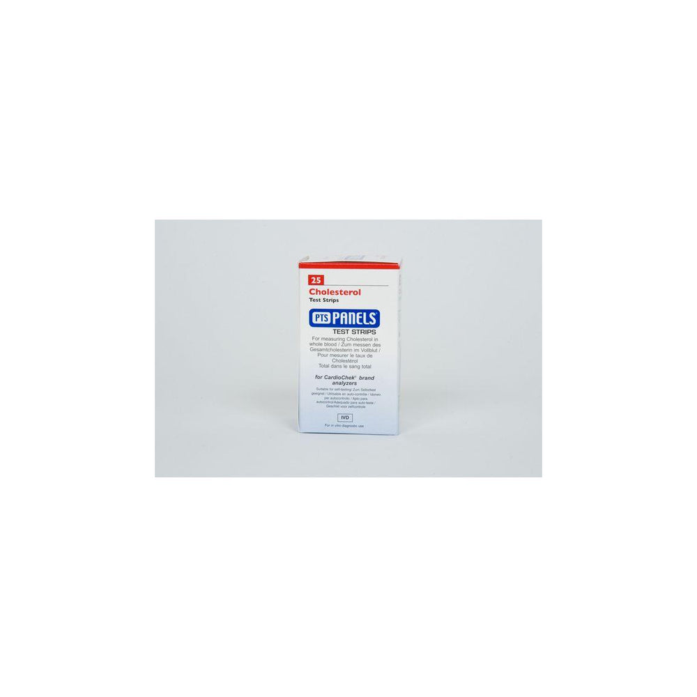 PTS Panels Total Cholesterol Test Strips ger en kvantitativ mätning av totalt kolesterol i helblod. De totala kolesteroltestremsorna har ett mätområde på 100-400 mg / dL. Testresultaten visas inom ungefär en minut. Pipettstorlek som skall användas: 15 ul