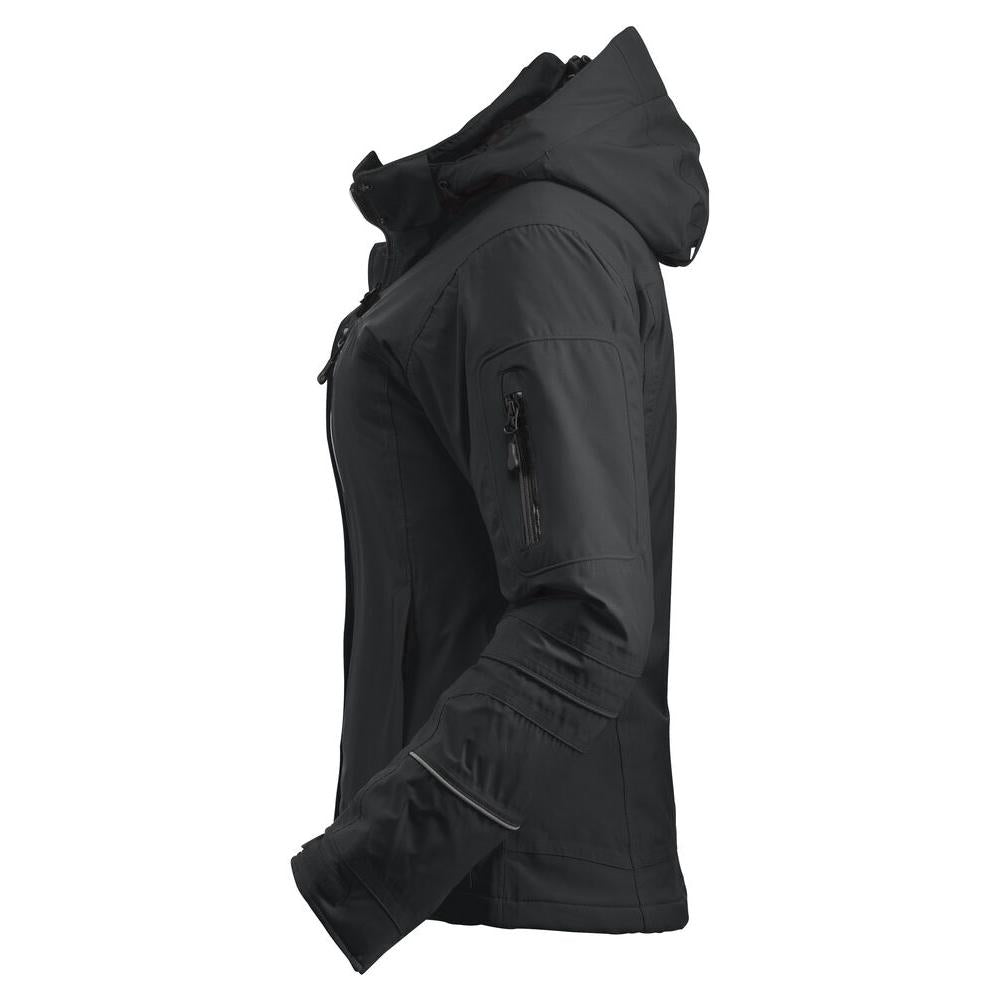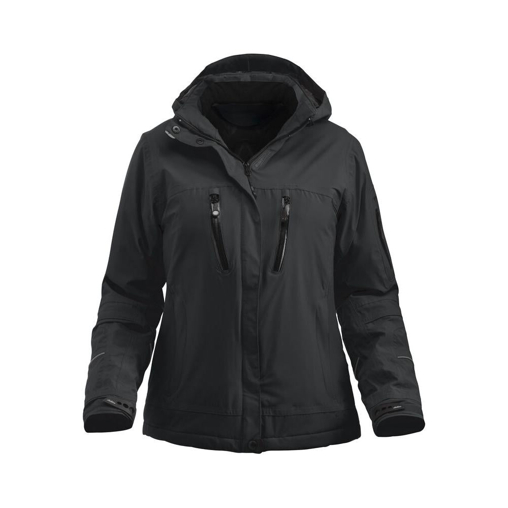 Vind- och vattentät vadderad softshelljacka med avtagbar huva och snölås.