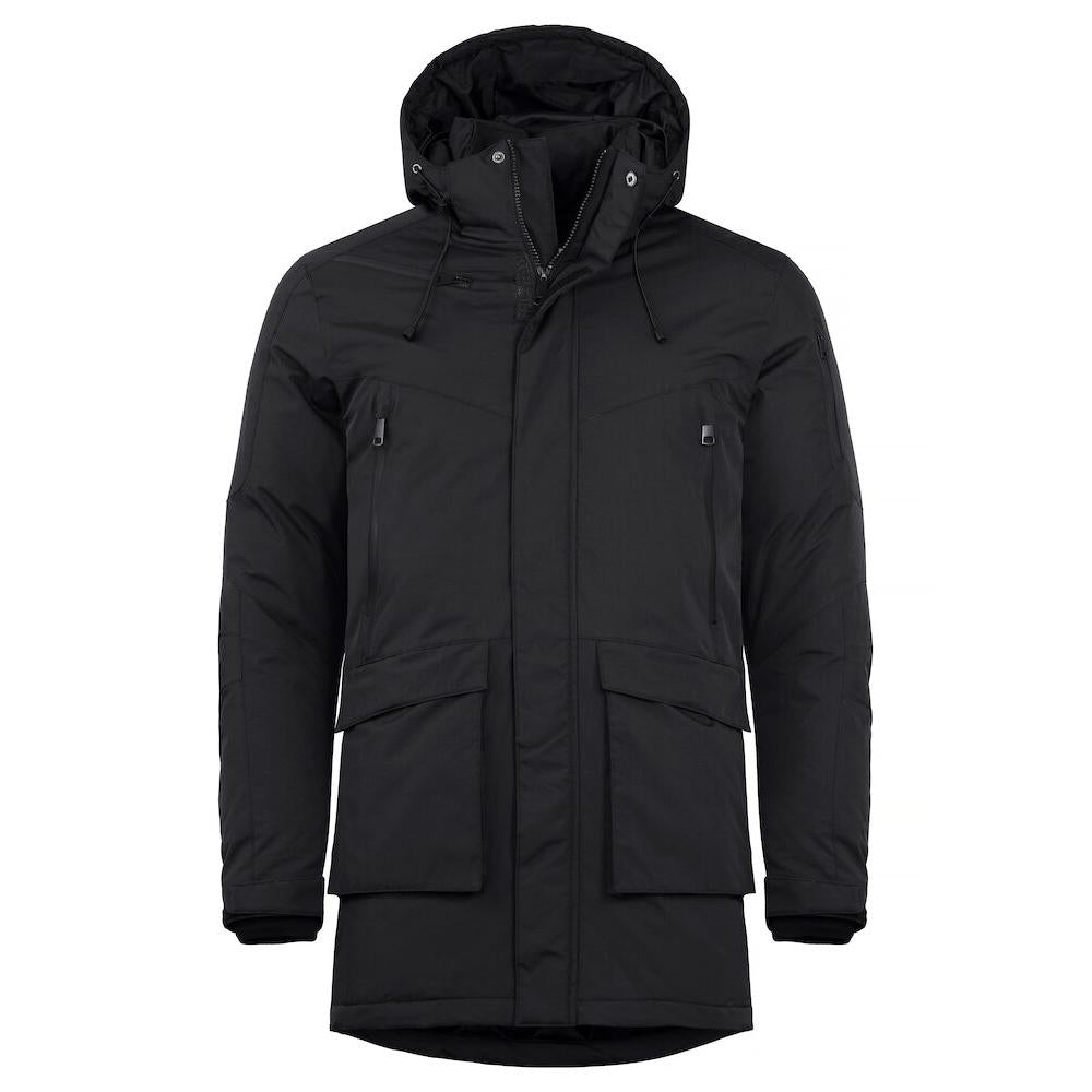 En härligt tjock och varm parkas i unisexmodell. Utrustad med avtagbar och justerbar huva samt förböjda ärmar för ökad rörelsefrihet. Fyra ytterfickor med vattentäta dragkedjor och två ytterfickor med magnet. En dold säkerhetsficka med en smart hörlurslösning finner du på insidan. Två innerfickor med dragkedja och två innerfickor med mesh. Dragsko i midjan och i jackans nederkant. Ärmavslut med kardborreknäppning samt 2x2 ribbad innermudd. Dragkedja i fodret för att underlätta för förädling.