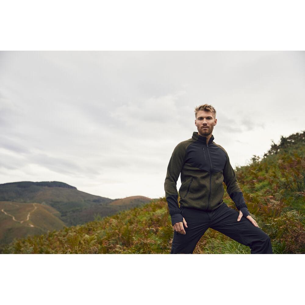 En varm och härlig stickad fleecejacka med valda delar i softshell.