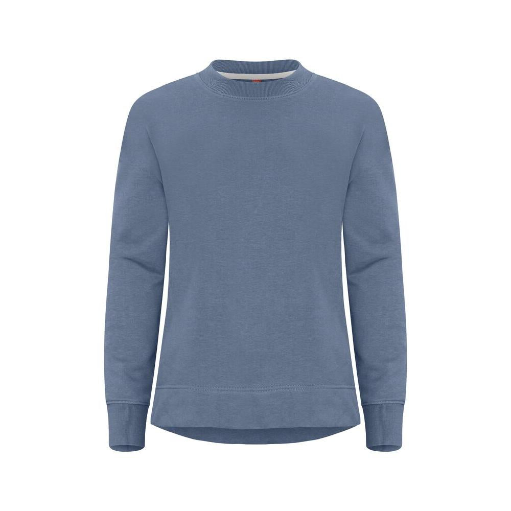 En något oversized tröja med rund hals för kvinnor, gjord av French terry-kvalitet och en bomull-återvunnen polyesterblandning. Denna tröja har följande egenskaper: