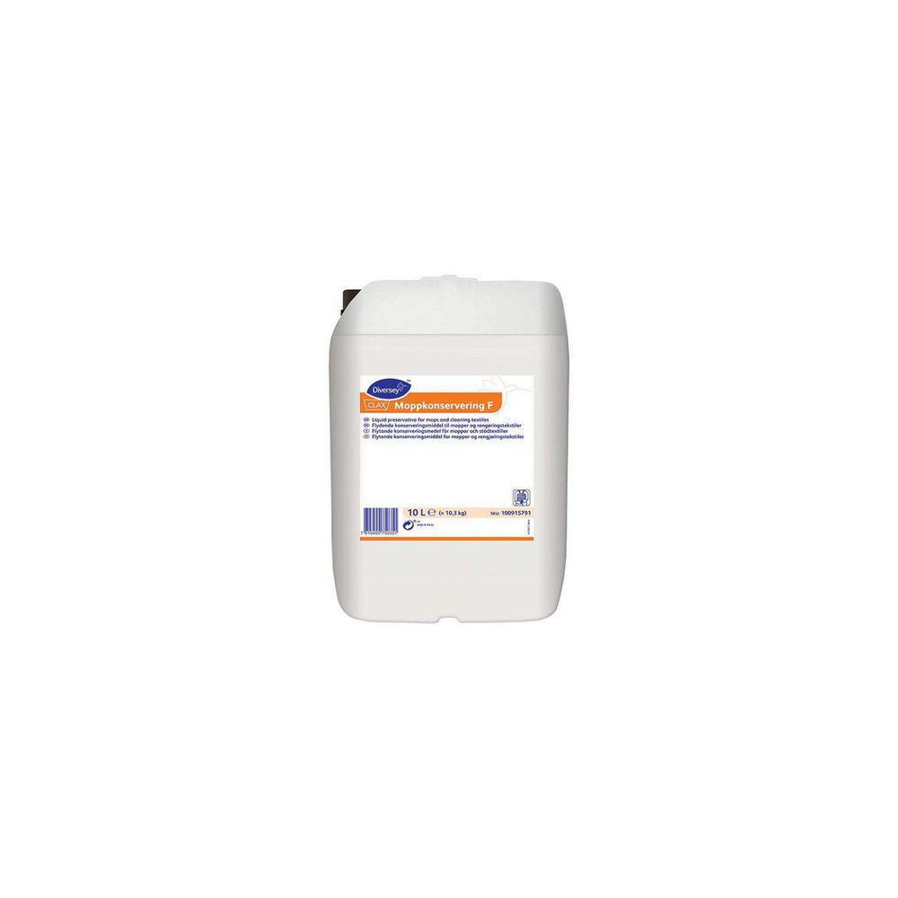 Flytande konserveringsmedel för förpreparerade fuktmoppar. Flytande konserveringsmedel för förpreparerade fuktmoppar. Mopparna kan förvaras fuktiga upp till tre dygn. Förhindrar tillväxt av bakterier och mögel upp till tre dygn i tvättade mopp- och svabbgarn. Doseras automatiskt i tvättprocessen. - pH-värde: < 2 (outspädd) - Parfymfri - Dosering: Automatisk dosering - Utseende: Transparent - Volym: 200 L