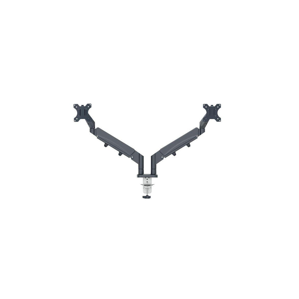 - Oberoende justering: Skärmarna kan justeras helt oberoende av varandra, och de kortare stödarmarna gör att skärmar i olika storlekar enkelt kan anpassas.