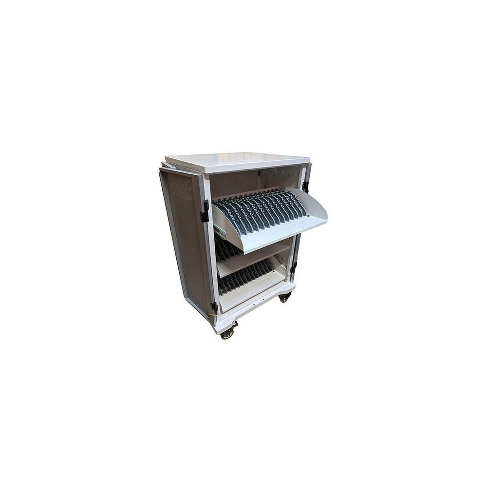 En välventilerad, robust laddvagn som håller era plattor, ChromeBook och laptops i säkert förvar. Blanda och ladda dina olika enheter i samma vagn. Vagnen har följande funktioner: