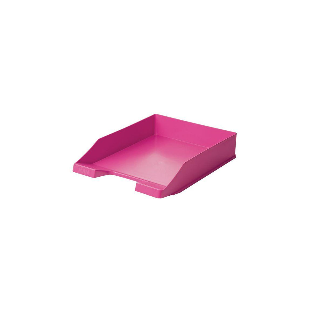 Organisera enkelt din arbetsplats med brevkorgar samtidigt som du håller dokumenten prydligt staplade och lättillgängliga. Brevkorg som gör det enkelt att ordna dokumenten på skrivbordet hemma eller på kontoret. Den hjälper till att undvika att dokument blandas ihop och organiserar pappersarbete. Du kan stapla flera korgar vertikalt för att separera dokument, så att du sparar utrymme och enkelt kommer åt dem. Det stadiga materialet garanterar lång livslängd och står emot dagligt slitage. - Brevkorg - Dokumentmått: A4 - Yttermått (B x D x H): 255 x 348 x 65 mm - Material: högkvalitativ plast, polystyren (PS) - En korg - Färg: Rosa