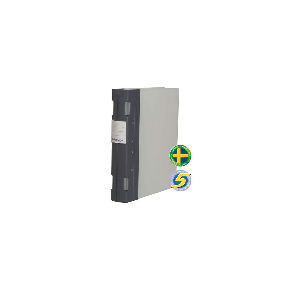 Kraftig pärm för tuffa tag och miljöer. Tillverkad i slitstark återvinningsbar PP-plast som står emot både fukt och smuts. Den kraftiga ryggen är ergonomiskt utformad med grepp som gör pärmen lätt att ta ut ur hyllan Mekanismen består av nickelfri metall Försedd med dubbla låskrokar för säker funktion Färgad rygg och neutralvita pärmsidor Etiketten kan enkelt bytas även när pärmen är stängd 5 års garanti