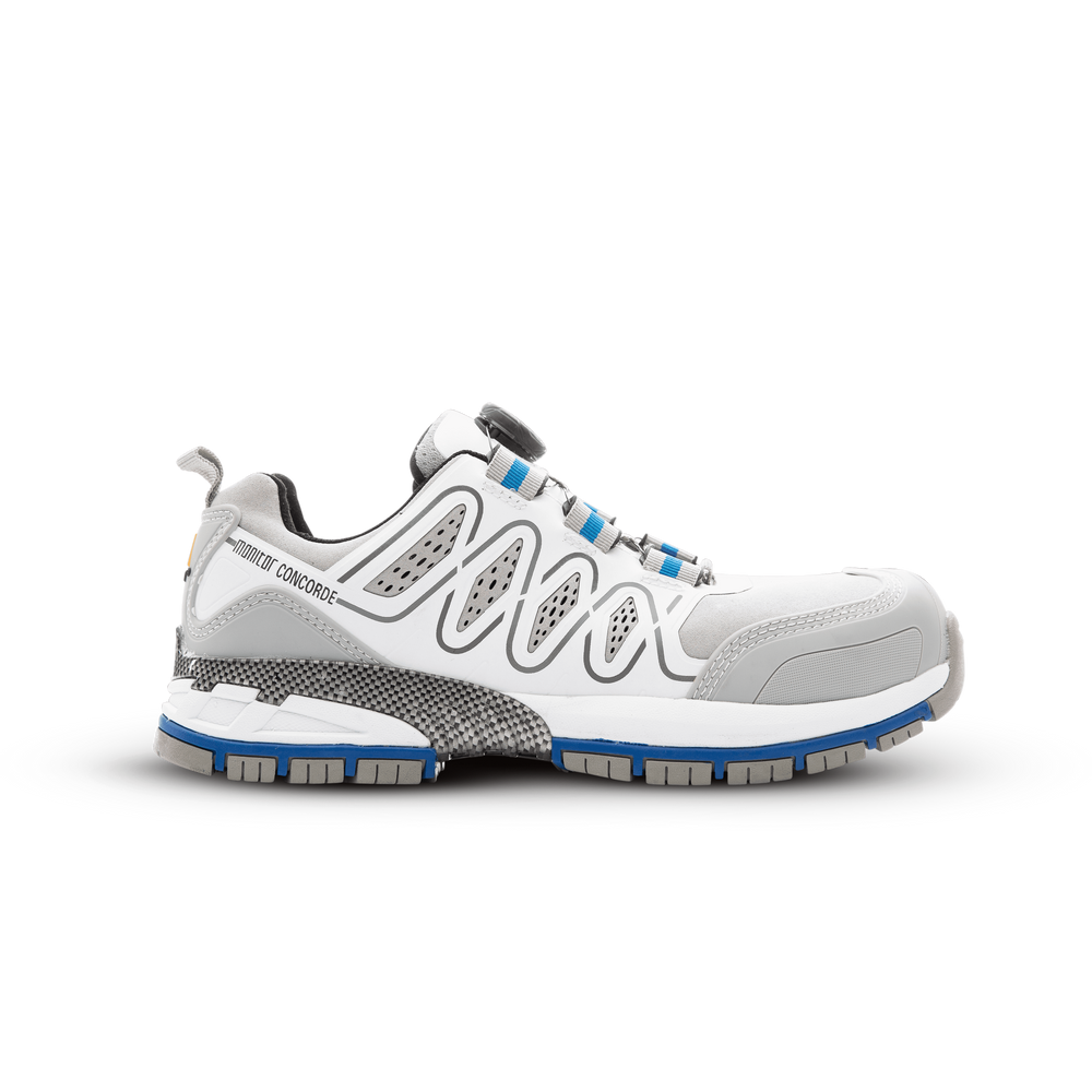 Monitor Concorde Safety Shoe är en sportig skyddssko med ovandel i mesh och mikrofiber. Skon har en aluminiumtåhätta, dämpande EVA-mellansula och en yttersula i gummi. Utrustad med BOA® Fit System för enkel snörning och optimal passform. Upptäck Monitor Concorde Safety Shoe, en innovativ och sportig skyddssko som kombinerar hög säkerhet med exceptionell komfort och stil för yrkesverksamma inom bygg och industri. Denna skyddssko är des ignad för att erbjuda maximalt skydd och bekvämlighet under hela arbetsdagen. Ovandelen är tillverka d i en kombination av mesh och mikrofiber, vilket ger utmärkt andningsförmåga och håller dina fötter svala och bekväma. De högventilerande mikrofiberfälten på sidorna säkerställer optimal ventilation. Monitor Concorde Safety Shoe är utrustad med det innovativa BOA® Fit System, som gör det enkelt att ta av och på skon och möjliggör snabb och exakt justering av passformen. Yttersulan är Monitors nya SIGMA-sula, en vidareutveckling av den klassiska Alpha-sulan, som ger utmärkt grepp på de flesta un derlag tack vare sitt mönstrade gummi. Mellansulan är tillverkad av dämpande EVA-material och har en kraftig torsionsgaffel som ökar stabiliteten ytterligare. Den breda aluminiumtåhättan och Monitors SS2.0 innersula garanterar maximalt skydd och stöd för dina fötter. Denna skyddssko är perfekt för b åde män och kvinnor som söker en pålitlig och bekväm skyddssko med sportig design till ett konkurren skraftigt pris. Välj Monitor Concorde Safety Shoe för att uppleva en kombination av hög säkerhet, en astående komfort och hållbarhet under hela din arbetsdag.