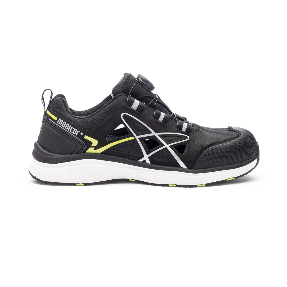 Monitor Enterprise Safety Sandal är en fjäderlätt skyddssandal med Ripstop-ovandel, aluminiumtåhätta och Pantzar APT spikskydd. Sandalen har en EVA-mellansula, gummiyttersula och BOA® L6 snörsystem fö r optimal passform. Upptäck Monitor Enterprise Safety Sandal, en del av Monitor Graphic-serien som erbjuder fjäderlätta skyddsskor designade för lager, industri och lättare bygg- och anläggningsarbeten. Enterprise är en extremt lätt skyddssandal med en vikt på endast 520 gram, vilket kombinerar hög säkerhet med excepti onell komfort och lätthet. Ovandelen är tillverkad i Ripstop, ett slitstarkt material som ger både h ållbarhet och ventilation. Skon är utrustad med ett kraftigt nos- och hälskydd i TPU för extra skydd mot slitage. Den breda passformen och BOA® L6 snörsystemet säkerställer en perfekt och justerbar pa ssform, vilket ökar både komforten och säkerheten. Monitor Enterprise Safety Sandal har en bred alum iniumtåhätta och ett Pantzar APT spikskydd, som erbjuder maximalt skydd utan att kompromissa med fle xibiliteten. Yttersulan är tillverkad av slitstarkt gummi som ger utmärkt grepp och stabilitet på ol ika underlag, medan mellansulan i EVA-material erbjuder överlägsen dämpning och komfort. Innersulan är Monitors Pro Support Recycle-sula, tillverkad av återvunnen polyuretan, vilket bidrar till både k omfort och hållbarhet. Sandalen är också utrustad med ESD-skydd för att förhindra elektrostatisk url addning, vilket skyddar känslig elektronik. Denna skyddssandal är idealisk för både män och kvinnor som söker en pålitlig och bekväm skyddssko med överlägsen prestanda och hållbarhet. Välj Monitor Ent erprise Safety Sandal för att uppleva en kombination av hög säkerhet, enastående komfort och lätthet under hela din arbetsdag.