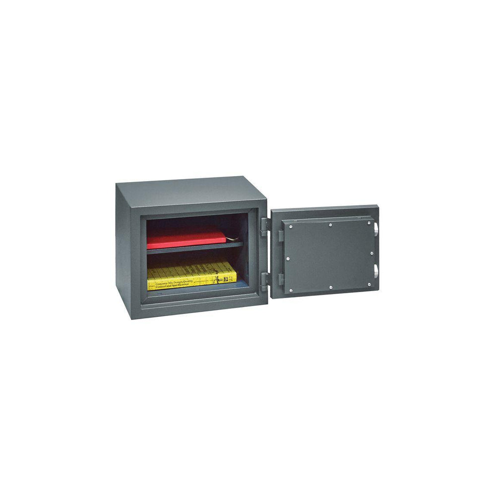 Stöldskyddskåp från Håbeco med en volym på 19 liter. Litet och nätt stöldskyddsskåp EN 14450 i klass S2 och med brandklassning enligt EN 15659 i 30P. 1 hylla ingår. Skåpet har 2 förankringshål i botten. Bult medföljer. Skåpet kan användas både i hemmet eller på arbetsplatsen. - 30P enligt EN 15659 - Yttermått (hxbxd): 300 x 360 x 300 mm - Innermått (hxbxd): 210 x 270 x 191 mm - Vikt: 11 kg - Volym: 19 liter - Två veckors leveranstid - Leverans sker till lastkaj, godsmottagning eller gatuplan