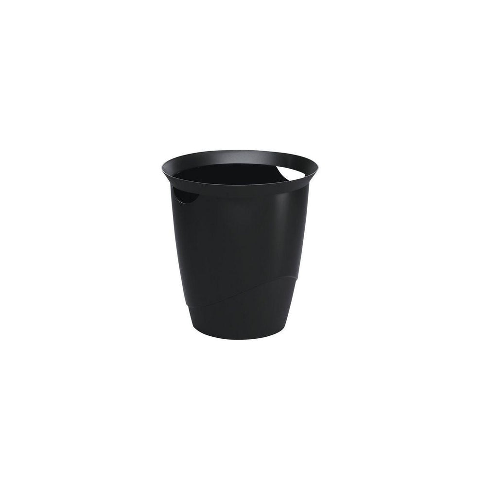 Den runda papperskorgen rymmer 16 liter och har ett handtag som gör den lätt att plocka upp när den ska tömmas. Den här polypropenkorgen gör sig bra i utrymmen med mycket pappersskräp.