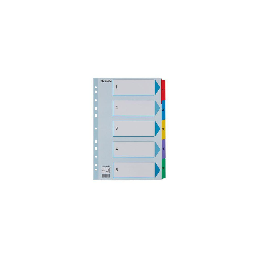 Esselte® avdelare underlättar organisering och märkning och är försedda med perforerade hål för användning med en mängd olika pärmstorlekar. Esselte-avdelare är tillverkade av stark och hållbar plast och kan användas för att förvandla organisering av anteckningsböcker till en enkel och rolig uppgift med numrerade och färgade förmärkta avdelare.