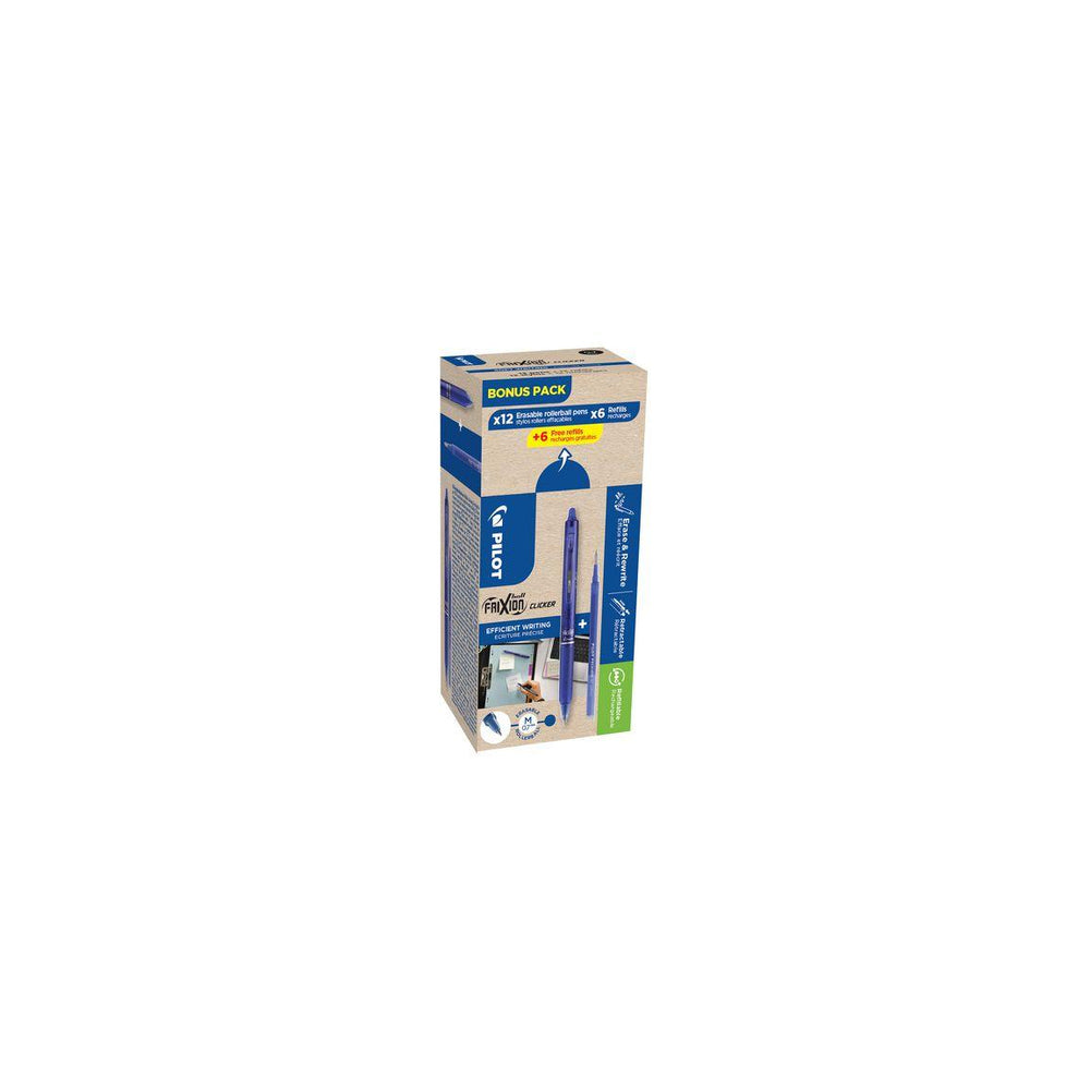 Frixion BeGreen storpack med 12 pennor och 12 refiller i en ask av återvunnen kartong.