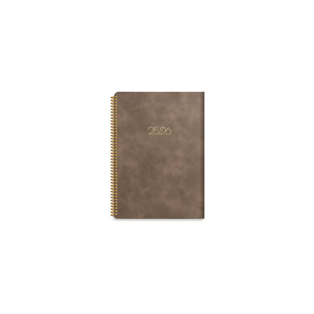Omslaget Twist Mocca är i en sammetsmjuk skinnimitation med en användbar flärp som kan fungera som bokmärke för att enkelt förflytta dig i kalendern. Färgen mocca är en kallare och mer dämpad nyans som inger en känsla av djup och lugn. Dess sobra intensitet tillför en subtil sofistikation till en redan elegant accessoar.