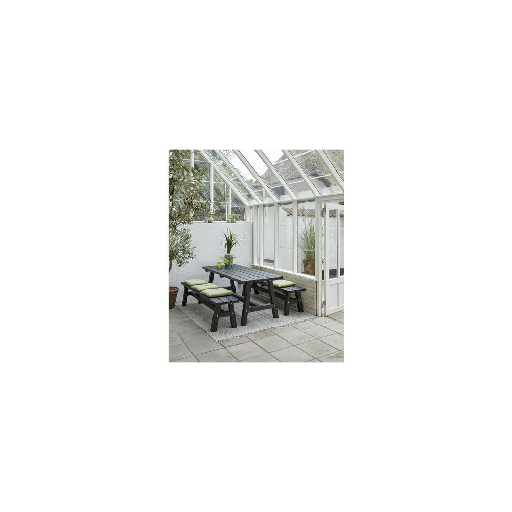 Uppdatera uteplatsen med denna snygga och robusta set med bänkar och bord! En riktigt snygg picknickset med två bänkar och ett bord som tål både vatten, vind och sol. Uppdatera din uteplats eller uteservering med detta set från PLUS. Lätt att torka av och hålla rent!