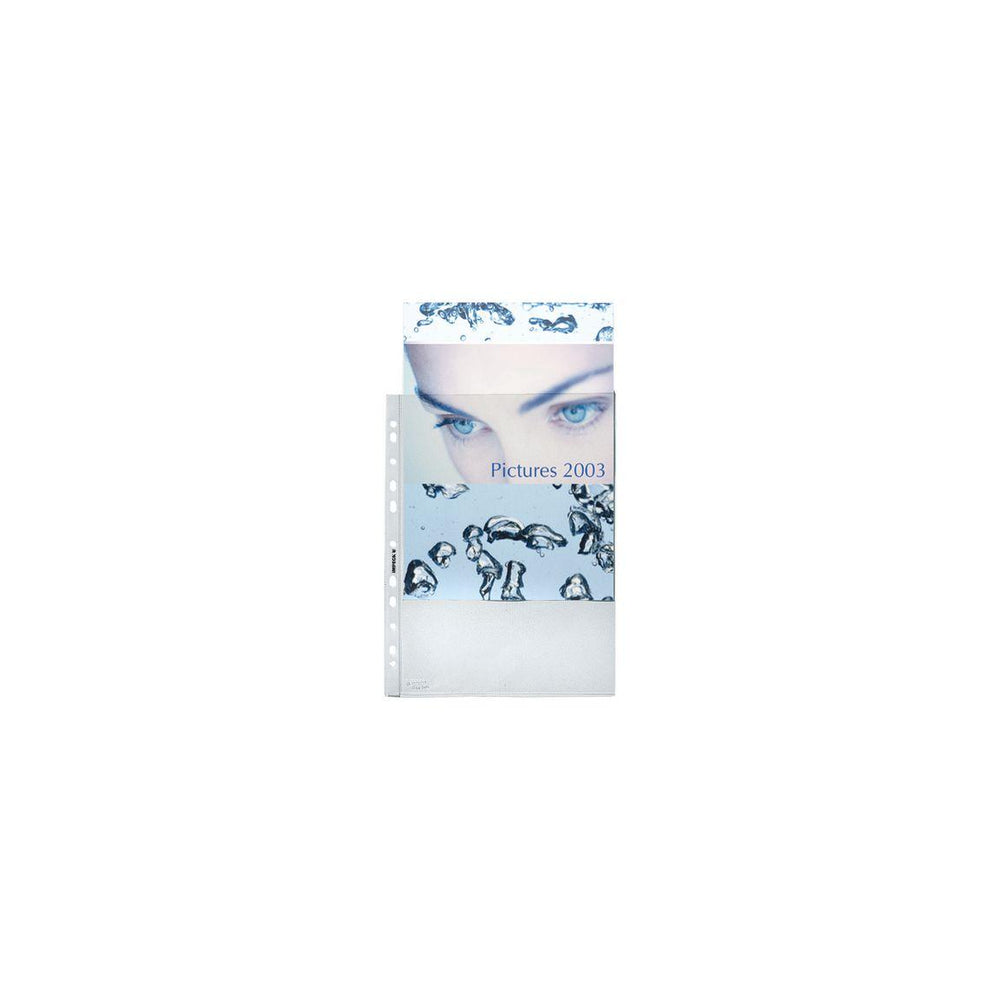Bra arkiveringsficka. Plastficka med öppning upptill och med förstärkt multihålning längs ena sidan.