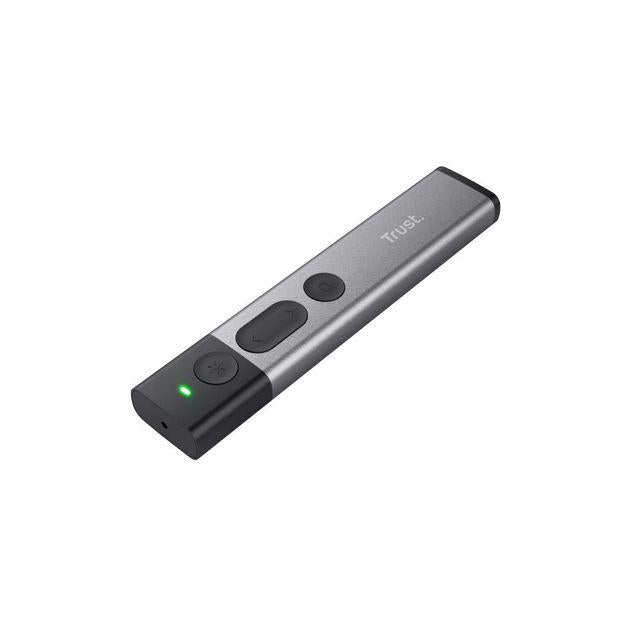 Trådlös pekare av aluminium med röd laser som hjälper dig att styra dina presentationer. Produkten är CE-märkt.