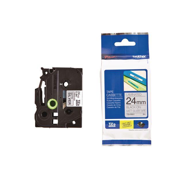 Tape BROTHER TZEM951 24mm Svart på Silv.