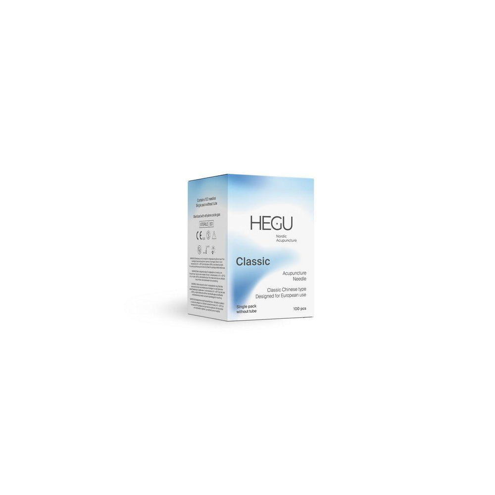 Hegu Classic är en klassisk kinesisk akupunkturnål med flexibelt handtag, tillverkat av tunn koppartråd. Handtaget på akupunkturnålen är försilvrat för att ge högsta möjliga elektriska ledningsförmåga och för att undvika oxidation. Handtaget är grövre än på andra akupunkturnålar av denna typ, vilket gör nålen lättare att manipulera. Stålet har högsta kinesiska kvalité med maskinslipad spets, vilket gör det lätt att penetrera huden och nålens polering är den som kinesiska akupunktörer kräver. - Passar bra för elstimulering - Med hylsa - Mått: 0,30 x 50 mm