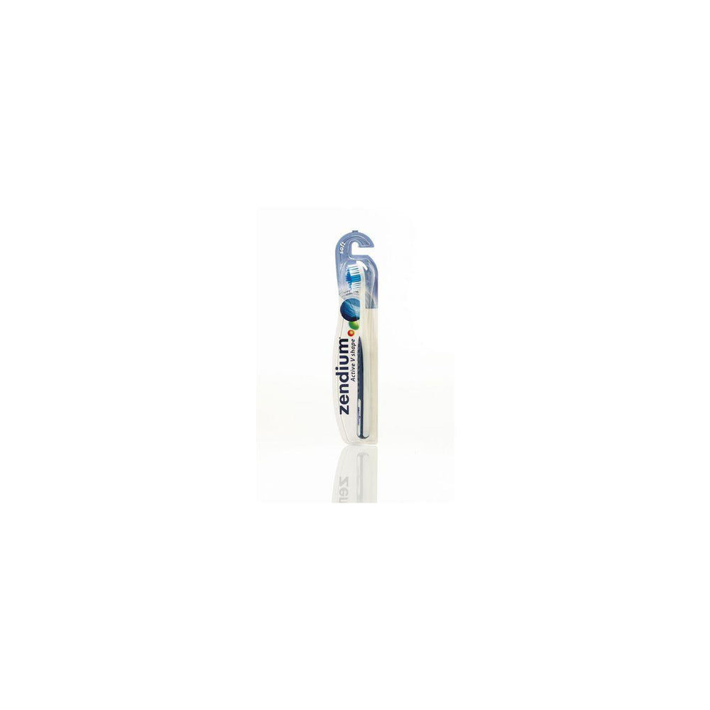 Tandborste för effektiv rengöring av känsliga tänder och tandkött. Mjuk vuxentandborste från Zendium med litet borsthuvud. Tandborstens skaft är tillverkat av 90% återvunnen plast.
