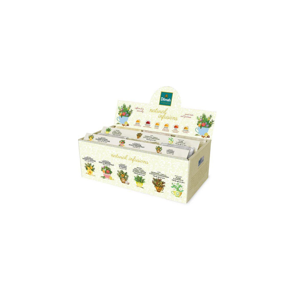 Brighten up every tea brew and let the flavours take you on a journey! Explore the diversity of nature with the Dilmah Infusion Herb Assortment Box. Inspired by the richness of nature, this range of herbal teas is presented in a stylish and practical display box made from sturdy cardboard. In this box you will find six delicious herbal teas, each packaged in individually enveloped tea bags for easy use. Each tea bag is filled with a harmonious blend of herbs and natural flavours, offering a soothing and refreshing tea experience. Best of all, these teas are caffeine-free, making them perfect for enjoying at any time of day. Give yourself the privilege of exploring Dilmah's world of herbal teas and let its natural flavours take you on a journey of relaxation and well-being - Six different flavours: - Holy Basil - Ginger - Lemon & Lemon Grass, Moringa - Chilli - Cocoa & Cardamom, Cardamon - Ginger & Orange, Tangarine - Rose - & Grapefruit and Pure Camomile - Ten of each - Decaffeinated: Yes