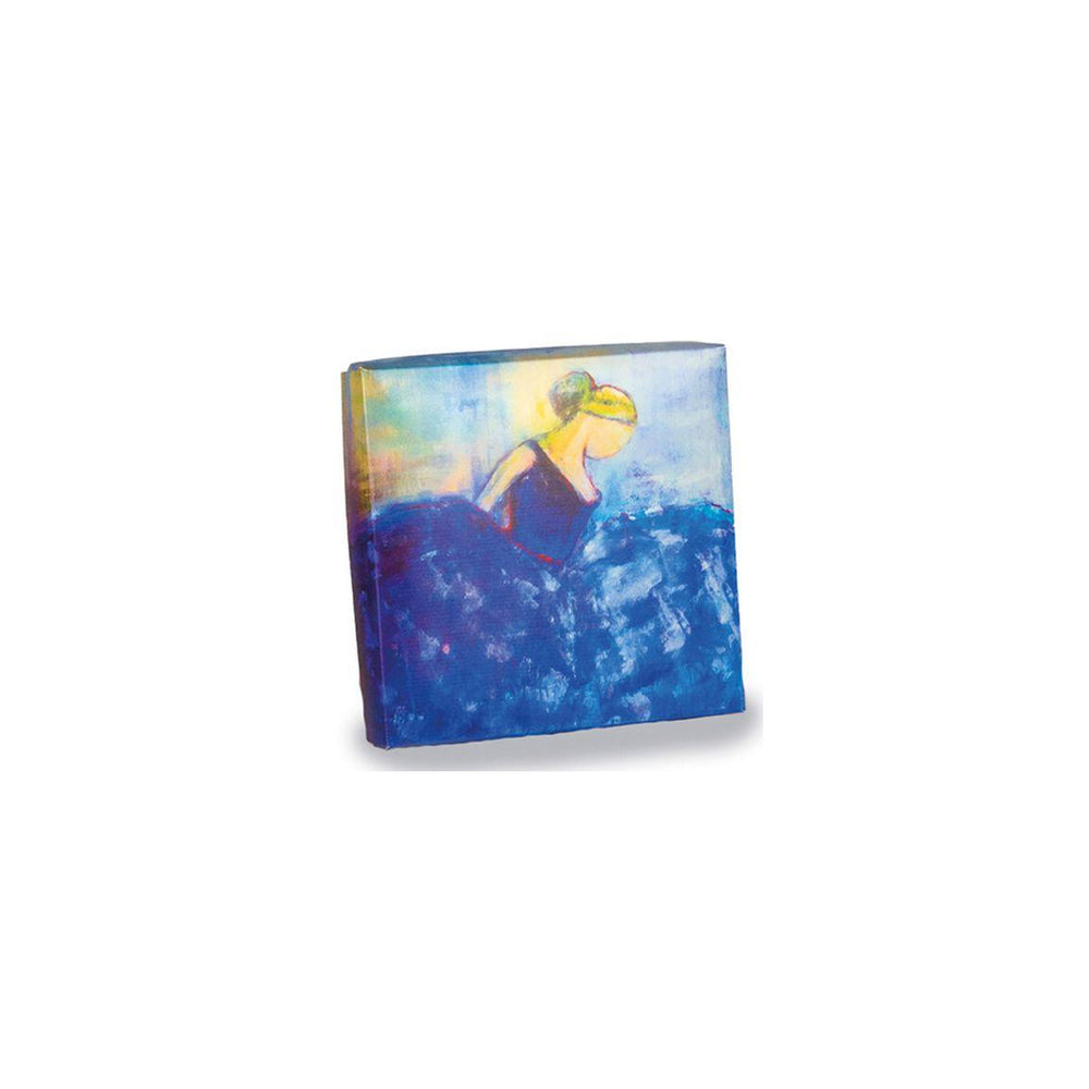 Hennes verk präglas ofta av kvinnliga gestalter som förmedlar både styrka och sårbarhet. Nu finns hennes konst som lock till pralinaskar med härliga praliner.