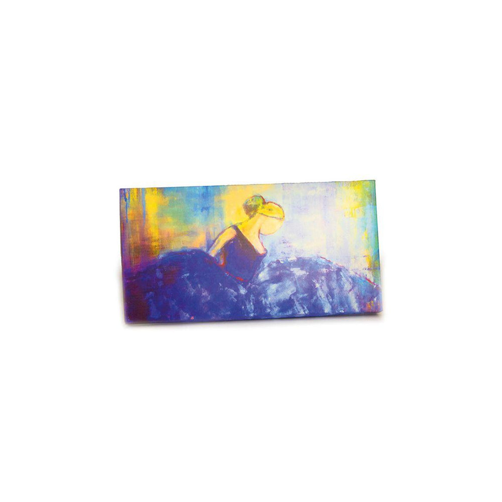 Hennes verk präglas ofta av kvinnliga gestalter som förmedlar både styrka och sårbarhet. Nu finns hennes konst som lock till pralinaskar med härliga praliner.