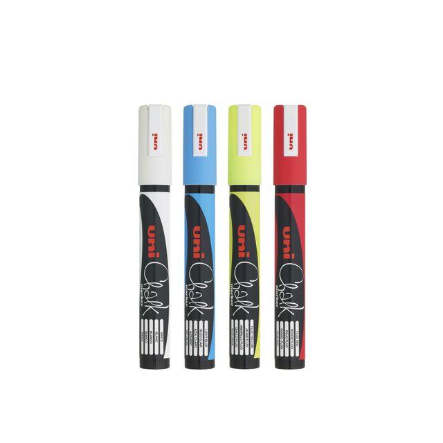 Uni® griffelpennor finns i fyra snygga färger och är perfekta för användning på icke-porösa ytor, som till exempel metall, glas och whiteboard. Uni® griffelpennor är vattenbaserade och kan enkelt torkas bort med en fuktig trasa.