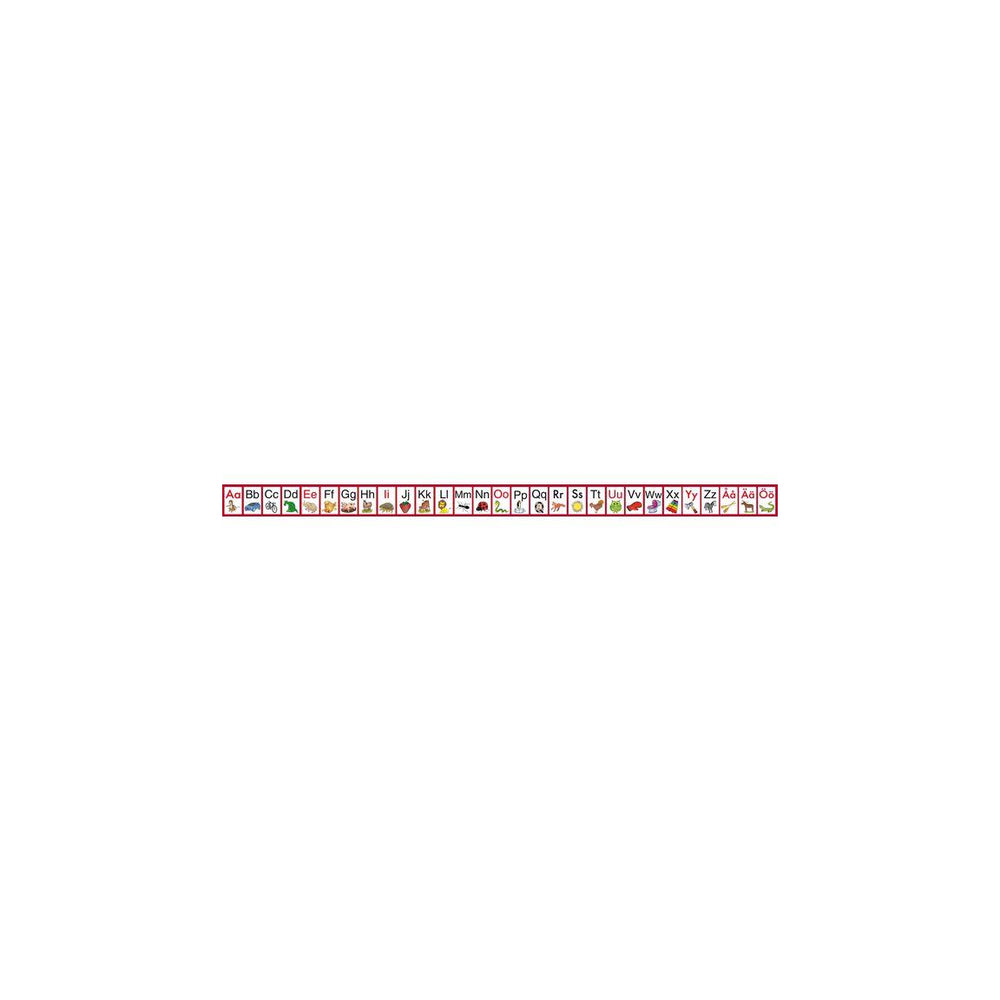 Alfabetsremsan är ett praktiskt hjälpmedel för eleverna att ha på skolbänken som stöd när de ska lära sig alfabetet. Den innehåller följande: