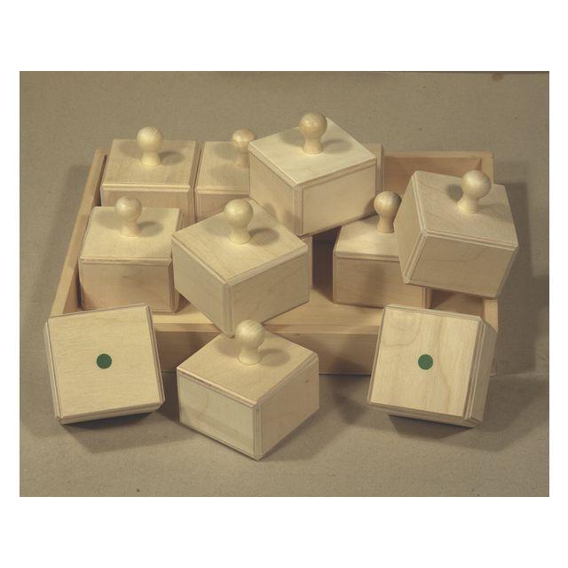 Det här ljudbaserade memoryspelet är en pedagogisk leksak som hjälper små barn att utveckla hörsel och koncentration genom lek. Det har en åldersanpassad design som inkluderar hållbara träblock med integrerade vred i en snidad trälåda. Ett barn kan lätt plocka upp dem för att producera ett ljud. Målet är att hitta två block som låter likadant. Färgade prickar längst ned på varje block gör det enkelt att kontrollera om man gissat rätt.