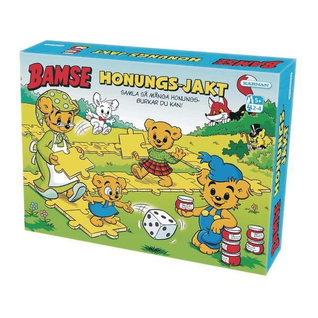 I denna Bamseklassiker skall du samla så många honungsburkar som möjligt! Skalman, Lille Skutt och Farmor hjälper dig, men se upp för Vargen som ställer till oreda! Pussla ihop spelplanen, den som har samlat flest honungsburkar när spelet är slut har vunnit.