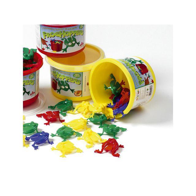Detta spel hjälper till att utveckla barns finmotorik och lär dem att räkna. Det är ett slags loppspel där man knäpper på grodorna så att de landar i burken.