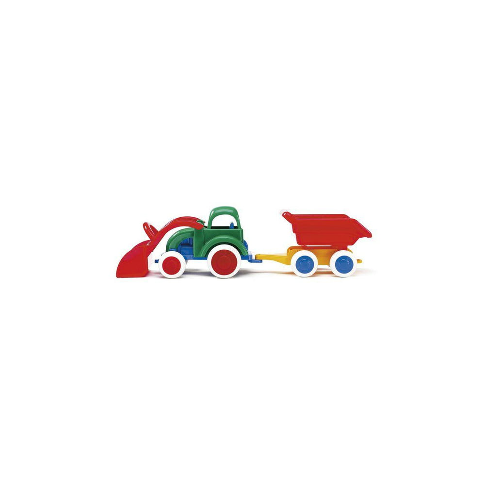 Traktorn med släp passar utmärkt för sandlådan eller strandlek. Den är målad i klara färger för ett snyggt utseende.