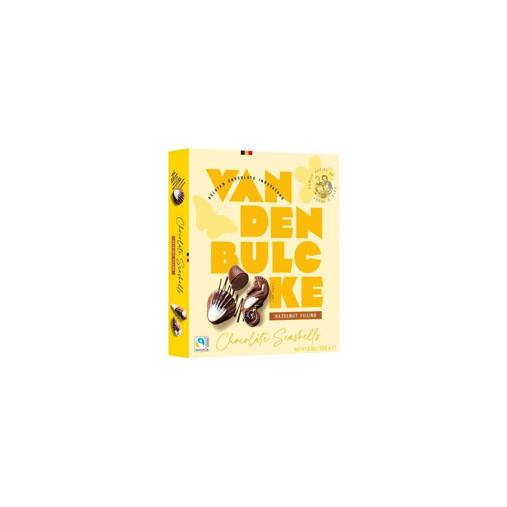 Chokladpraliner med hasselnötsfyllning i vacker påskdesign från Vandenbulcke. Asken innehåller olika motiv av vackra och goda sjöfrukter. Varje bit är en himmelsk kombination av krämig choklad och den nötiga sötman från hasselnötter.