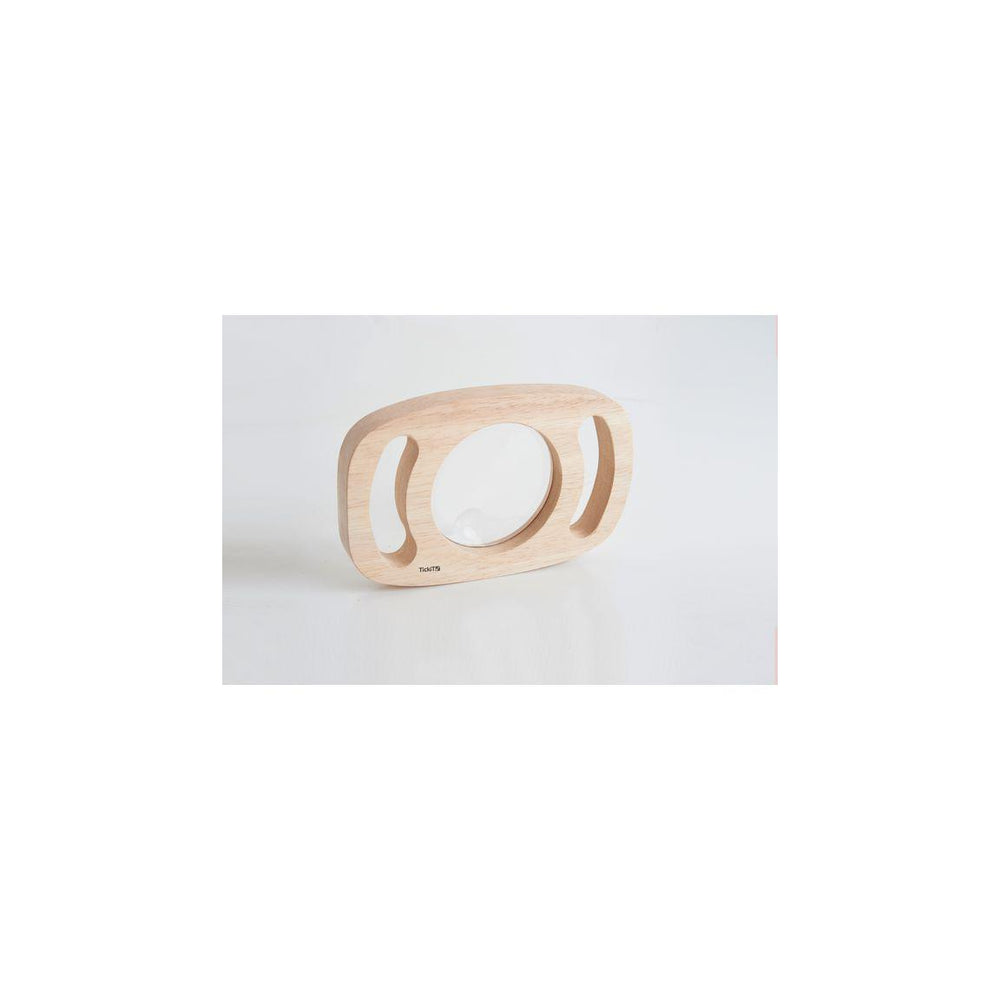 Stabil ram av gummiträ. Utrustad med greppvänliga handtag som omger en förstoringslins med 2x förstoring (med en insatslins som erbjuder 3x förstoring).