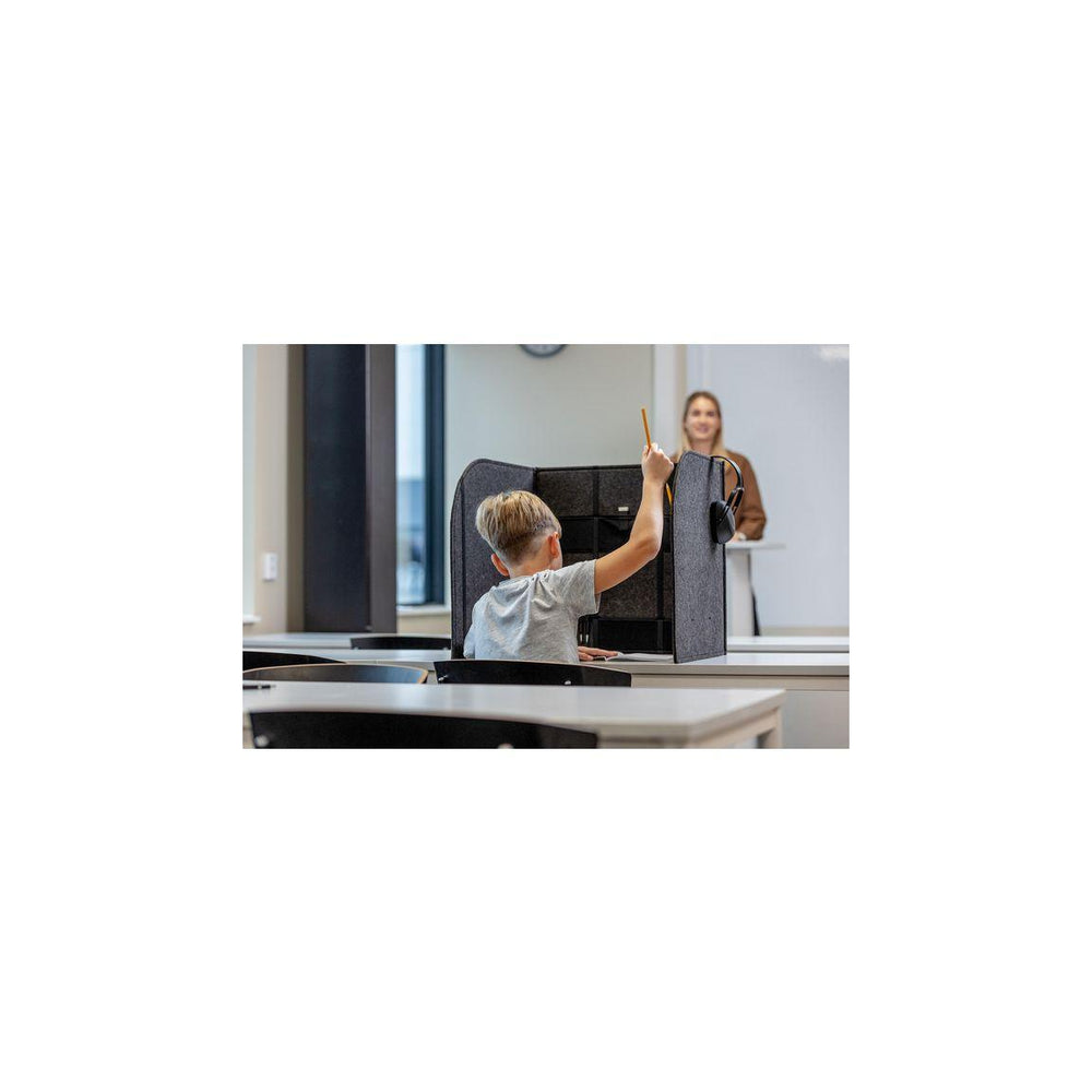 Ljuddämpande bordsskärm ger en effektiv avskärmning mellan elever. Den är perfekt för: