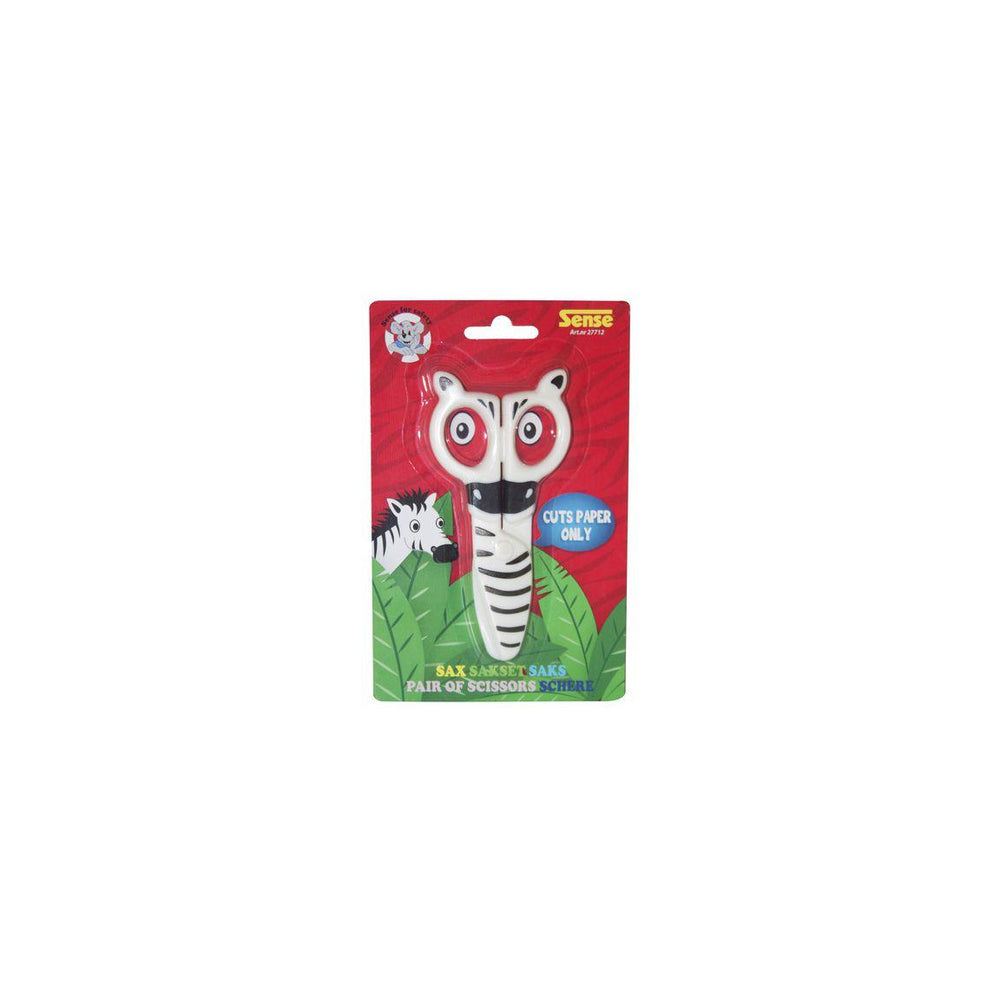 Liten barnsax i Zebramotiv. En söt barnsax som för bästa tänkbara säkerhet är helt i plast, även bladen. Saxen har rundade former, saknar vassa kanter och klipper enbart i papper. Den är av en nätt storlek, för att passa en liten hand. - Zebramotiv - Passar små händer - Klipper endast i papper Varning. Lämpar sig inte för barn under 3 år
