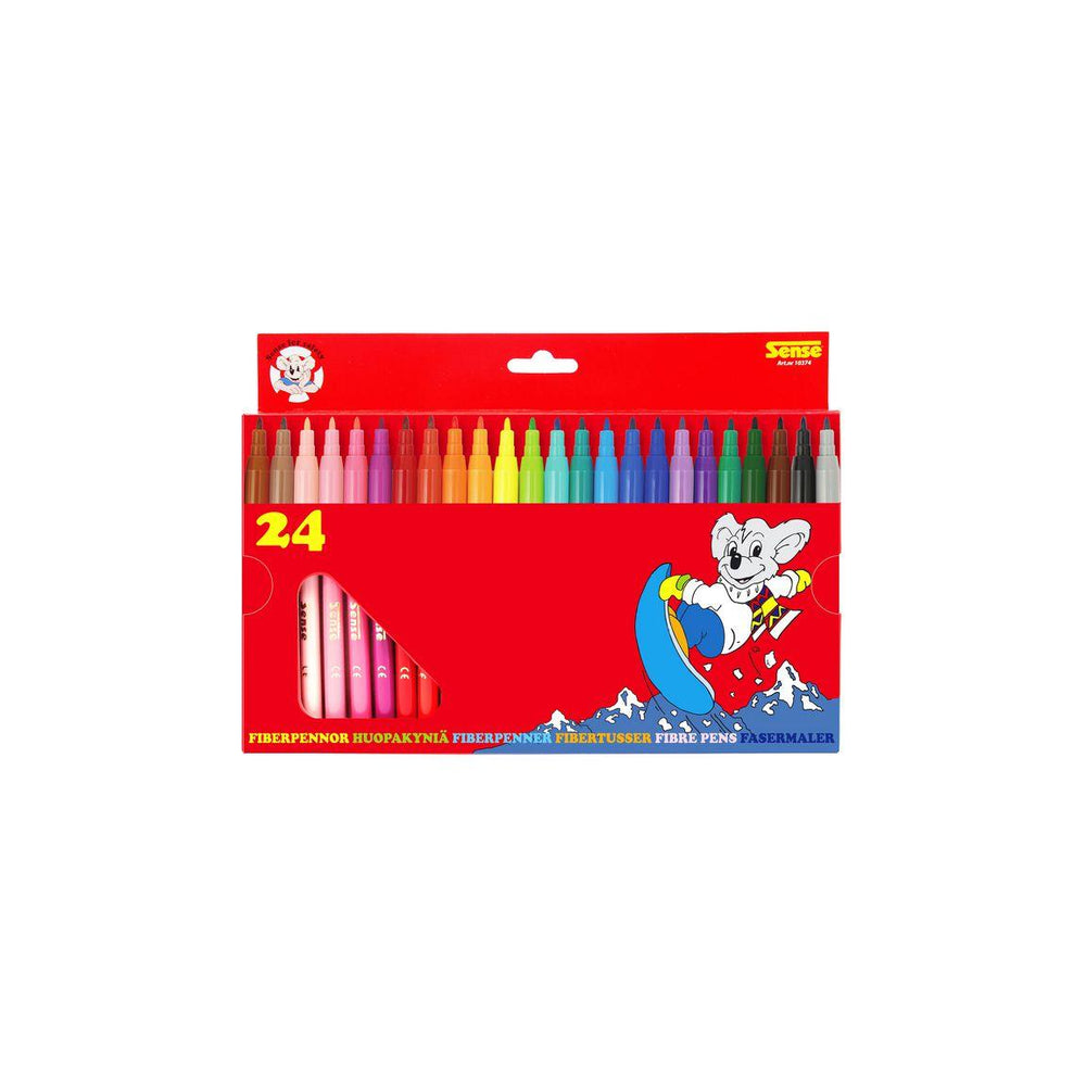 Dessa Sense© fiberspetspennor har högkvalitativa, slitagetåliga spetsar som förblir i gott skick efter långvarig användning. Njut av kreativa målaraktiviteter med denna snygga förpackning med Sense© fiberspetspennor som erbjuder en rad olika färger att välja mellan. Oavsett om du skapar ett gratulationskort, vykort, hantverk eller annat kommer ditt arbete till liv med dessa filtpennor. Dessutom är de färgkodade pennkropparna lätta att identifiera och välja. - Tillverkad av: Polypropen (PP) - PVC-fri - Textfärg: 24 olika fäger - Färg pennkropp: Samma som textfärg Varning. Lämpar sig inte för barn under 3 år