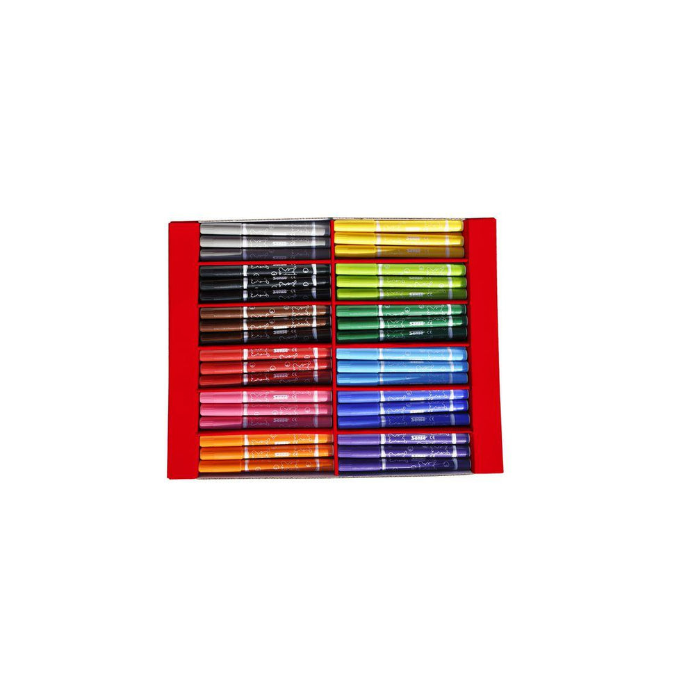 Jumbo färgpennor för alla typer av konstnärsskap. Jumbo färgpennor med starka färger och hög täckningsförmåga. De tåliga färgpennorna som levereras i 12 olika färger. Pennan har en linjebredd på 2,0 mm Pennan är tålig och klarar av tuffare tag utan att exemplevis spetsen trycks in vid hårdare belastning. Den ventilerade korken har utformats för att undvika kvävningsrisk. Pennan har lång livslängd. Lämnas pennan utan kork en tid klarar den sig utan att torka ut. Ej avtvättningsbar. - Tillverkad av: Polypropen (PP) - PVC-fri - Rund spets - Linjebredd: 2,0 mm - Textfärg: 12 olika färger - Färg pennkropp: Samma som textfärg Varning. Lämpar sig inte för barn under 3 år