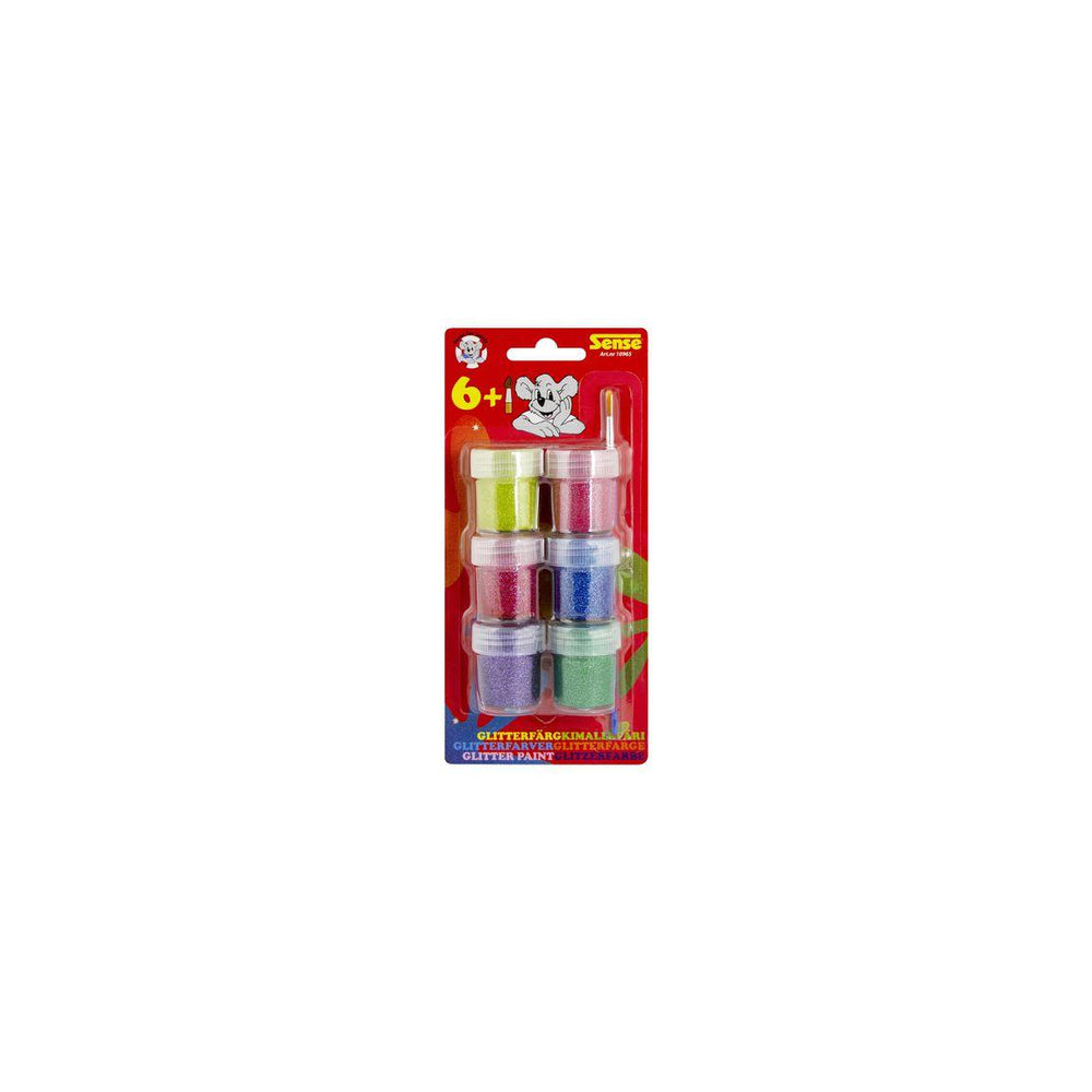 Dekorera och måla teckningar och hantverk med dessa Sense© glitterfärger i 6-pack som innehåller gnistrande glittrig färg. Lägg till lite glitter i dina uppgifter, minnesalbum, fotoramar och gratulationskort med dessa Sense© glitterfärger i 6-pack. Dessa glitterfärger levereras i plastbehållare och är utrustade med en pensel för enkel applicering. Denna förpackning rekommenderas för barn och vuxna. - Glittriga färger för minnesalbum och kortskapande - Med pensel - Behållare: Plastflaskor - Färg: Blandade - Antal: 6 Varning. Lämpar sig inte för barn under 3 år