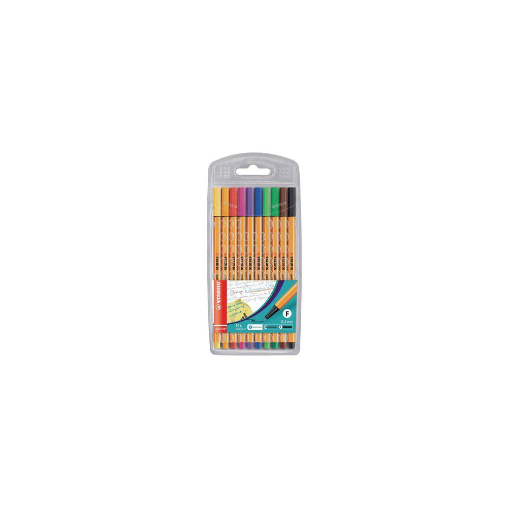 Välkända STABILO® point 88® är idealisk för att skriva, rita och skissa. Den har ett levande vattenbaserat bläck och klarar sig länge utan kork utan att torka. Denna STABILO® point 88® penna med tunn spets är utformad för lång hållbarhet och passar utmärkt för skol- och proffsbruk eftersom den metallförstärkta spetsen möjliggör detaljerat arbete som att rita diagram eller skisser och tekniska ritningar. Pennans tunna metallspets passar utmärkt för användning med mallar och linjaler. Pennan har en linjebredd på 0,4 mm, en sexkantig randig design och en ventilerad säkerhetskork. Pennan har dessutom ett luktfritt vattenbaserat bläck så att den kan ligga utan kork i upp till 24 timmar utan att torka. Finns i blandade klara färger. De lysande pigmenterade linjerna gör förpackningen med 10 färgglada pennor till ett populärt val för både konstnärer och barn. - Huv - Linjebredd: 0,4 mm - Textfärg: 10 olika färger - Färg pennkropp: Orange (Huv i textfärg) - Vattenbaserat bläck