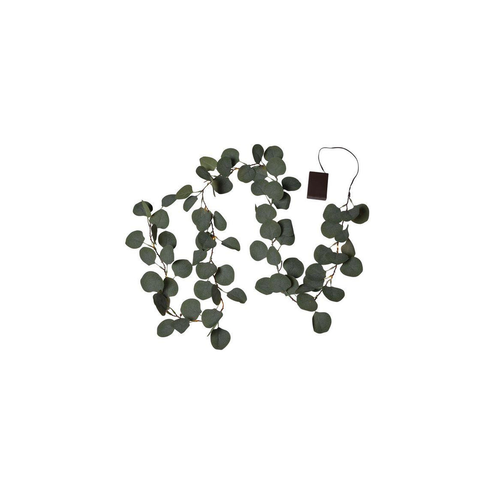 Skapa en stämningsfull atmosfär med vacker dekorationsgirlang. Vacker dekorationsgirlang med gröna eukalyptusblad, 180cm lång med 20 varmvita ljuspunkter, med batteridosa och timerfunktion, för inomhusbruk. Med en praktisk batteridosa och timerfunktion behöver du inte oroa dig för att slå av och på den - den tar hand om sig själv! Perfekt för att skapa en härlig julstämning eller för att lysa upp året om. - Timer: 6 h på, 18 h av, repeterande - Brinntid ca. 80h - 3 batterier AA ingår ej - För inomhusbruk